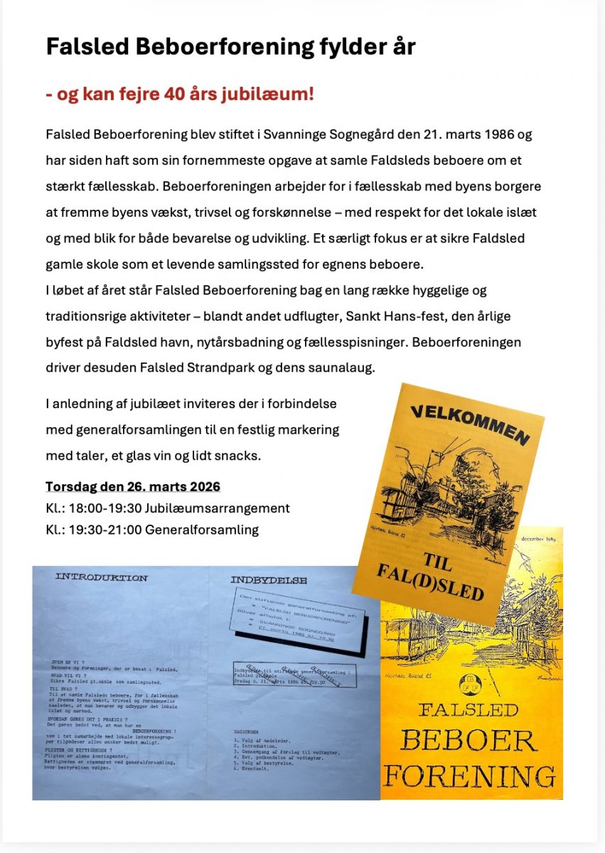 26 marts Falsled Beboerforenings 40 års jubilæum