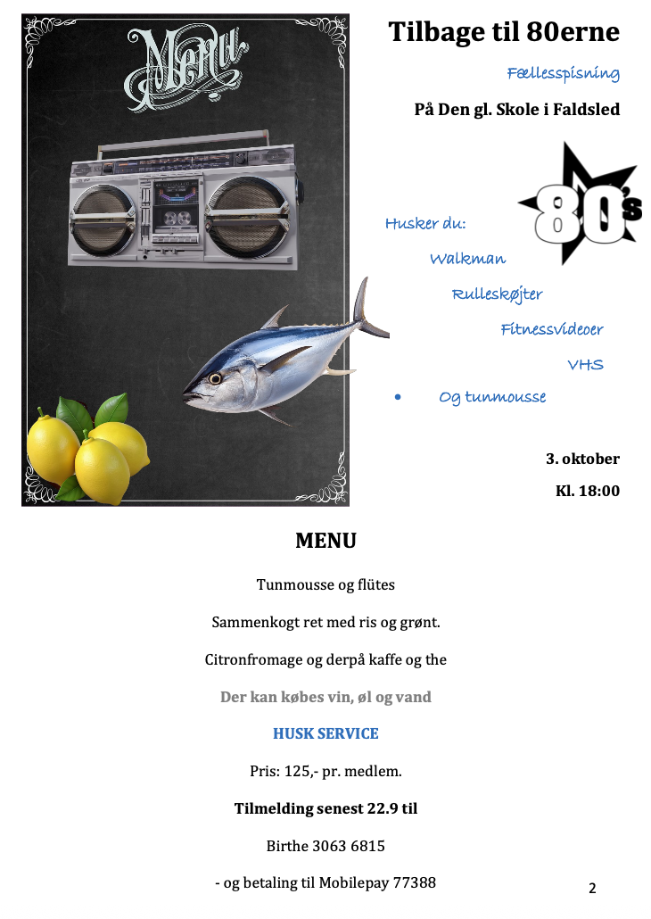 3 oktober. Fællesspisning. Tilbage til 80erne